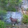 Am Zugang zum Röglinger Tal muß natürlich auch die Furt wieder durchquert werden. Zwar ist es nicht ganz so wild wie beim letzten Mal, aber auf dem Bock sitzen bleiben kann Bert - trotz "Bewaffnung" mit einem Stöckchen - wieder nicht. Er muß sich die Füße naß machen und Rufus durchs Wasser führen. (FILM)