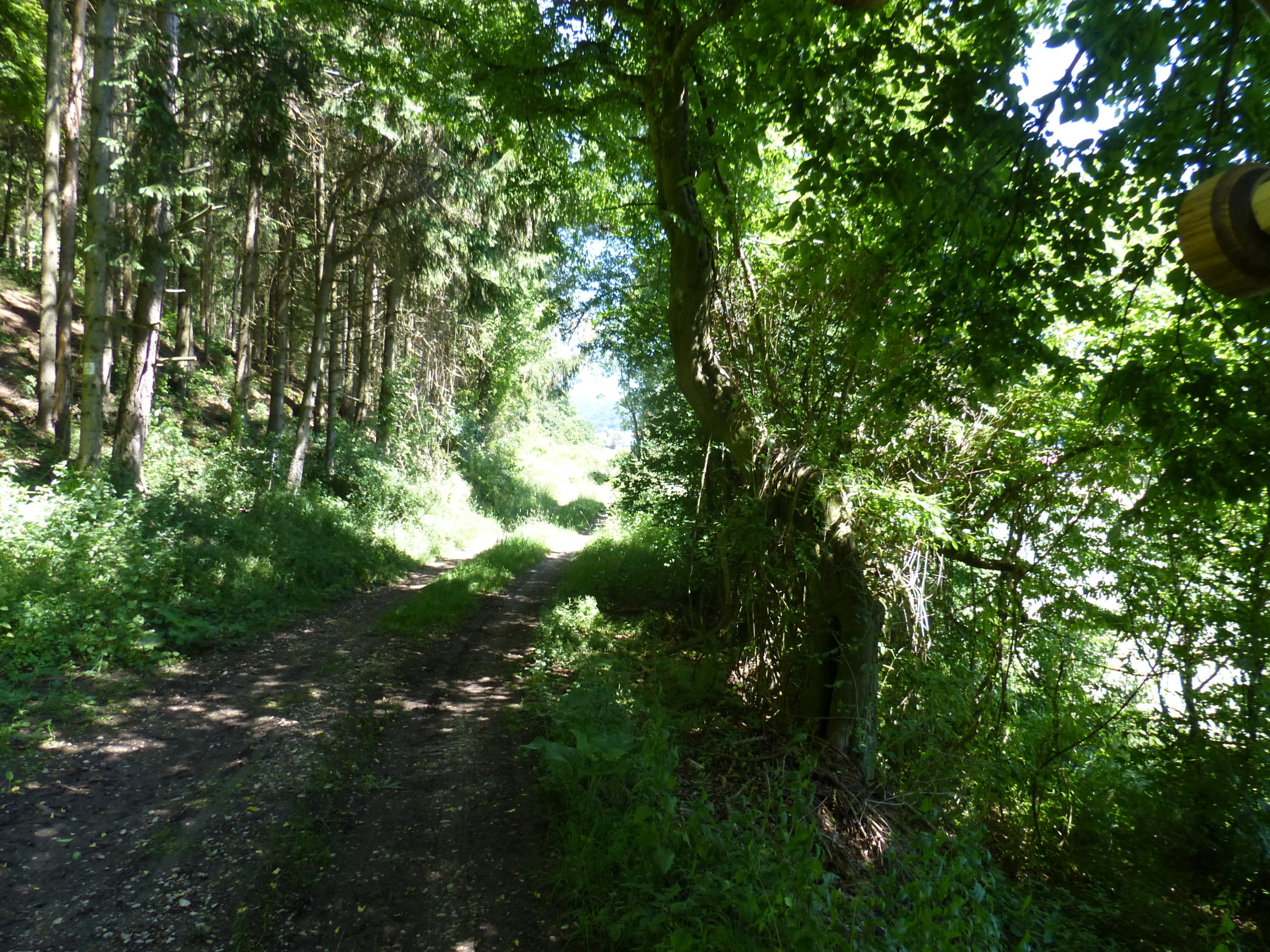 Dann schlagen wir den Beixenharter Talweg ein, ein sanfter Wanderweg, am unteren Rand des Naturwaldreservats Beixenhart entlang. Richtig den Hang bergauf, hinein in den Naturwald, führt der Jägersteig - aber mit Pferd und Karren ist leider schlecht klettern...
