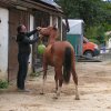 Berts Ziel ist es, daß Rufus irgendwann auf seinen Schultern steht. Mir wird angst und bange bei dem Gedanken... Zum Glück ist Rufus sehr sanft und vorsichtig, vor allem beim Rückziehen des Hufs.
