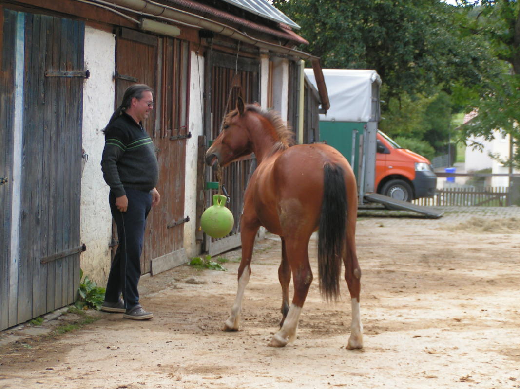Andererseits möchte Rufus natürlich beschäftigt werden. Ihm ist sicher langweilig ohne seine Kumpels von der Fohlenweide - noch dazu wo die beiden Stuten ihn noch strikt ablehnen...