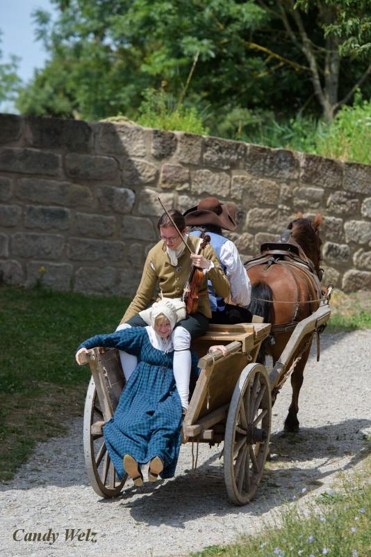So ein Fest zieht allerhand Fremde an: Handwerker und Händler, Gaukler und Gauner. Auch ein Fuhrmann kann sich gute Gewinne ausrechnen beim Personen- und Warentransport. Die bayerischen Chevauleger sorgen für Ordnung, die Köchinnen zeigen all ihre Kunstfertigkeit, die Musikanten spielen auf zum Tanz...