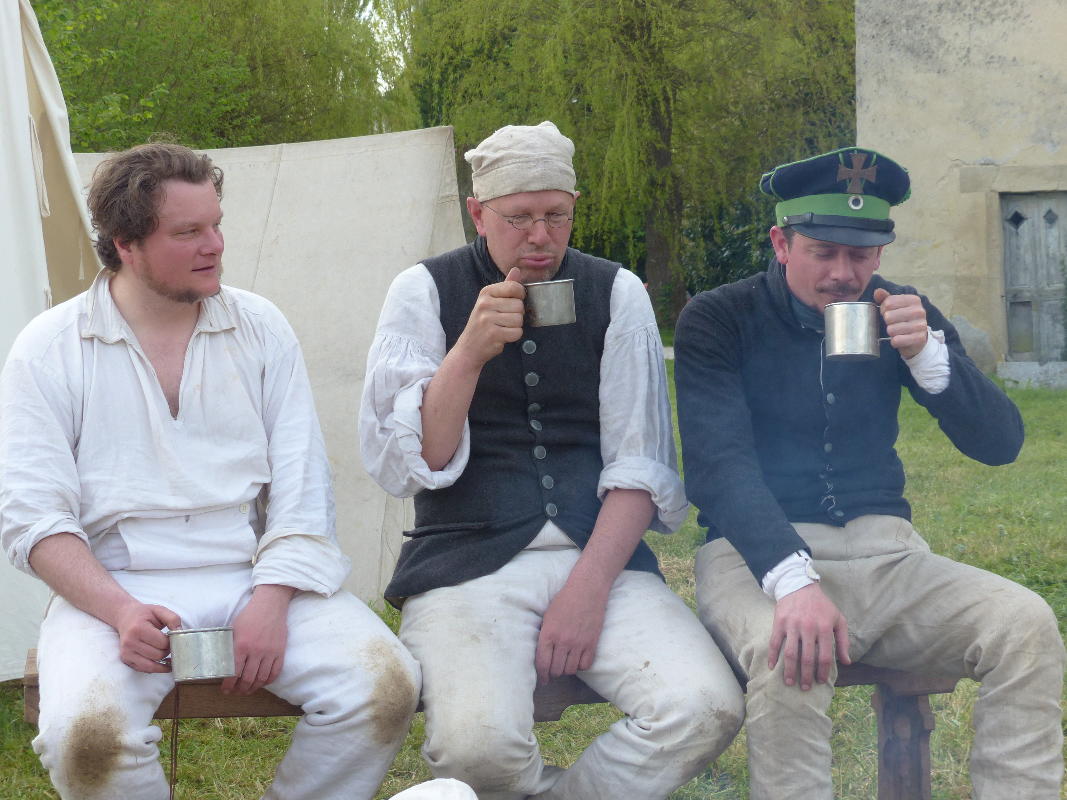 Vauchamps liegt eingebettet inmitten der sanften Hügel der Champagne. Strahlend gelb präsentieren sich die ausgedehnten Rapsfelder jetzt Anfang Mai, die leuchtenden Farben sind eine wahre Orgie für unsere Augen. Die "Husaren von Lasalle" aus Montmirail haben die Veranstaltung organisiert und das in Privatbesitz befindliche kleine Chateau am Ortsrand von Vauchamps bietet auf seinem Grundstück einen behaglichen Raum für ein nettes kleines Feldlager.