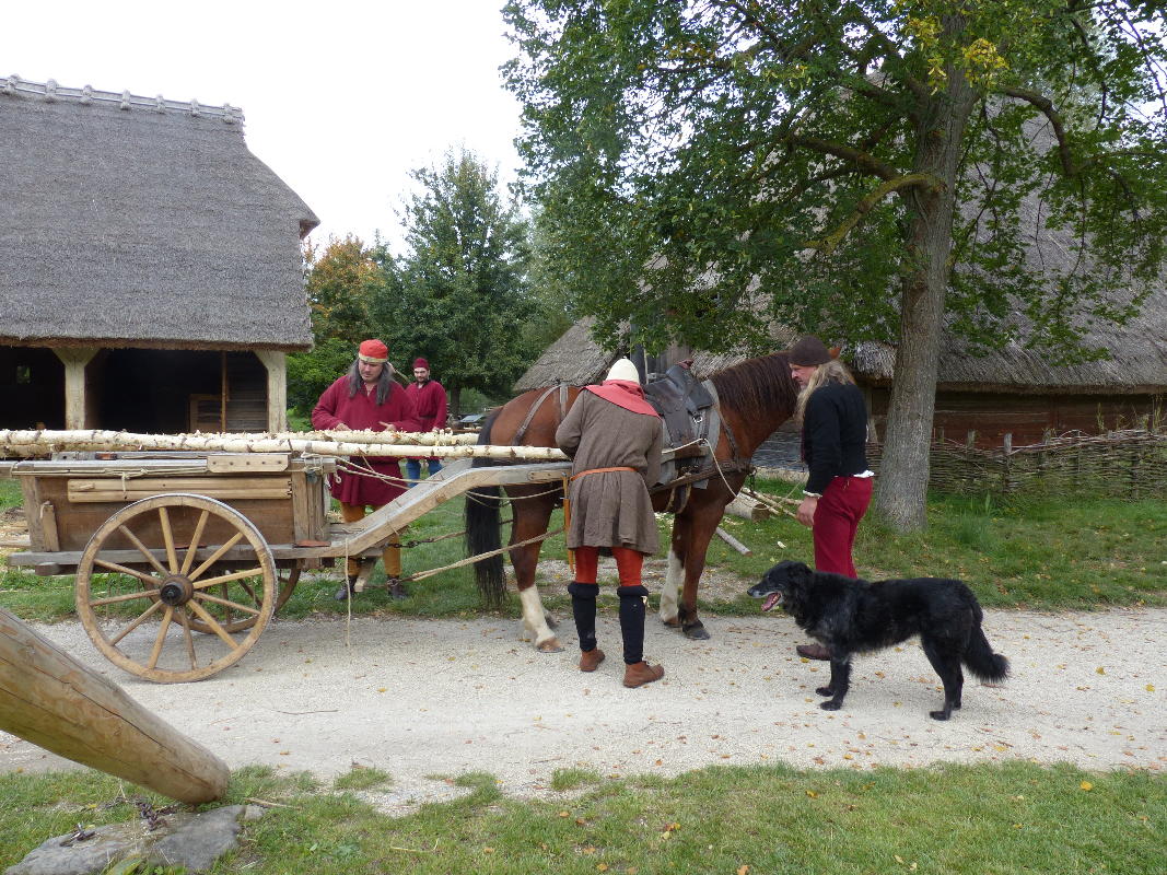 Auf den alten Abbildungen ist zu sehen, daß die langen seitlichen Stangen den Korpus des Wagens bilden und dann bis zur Schulter des Pferds vor reichen.
