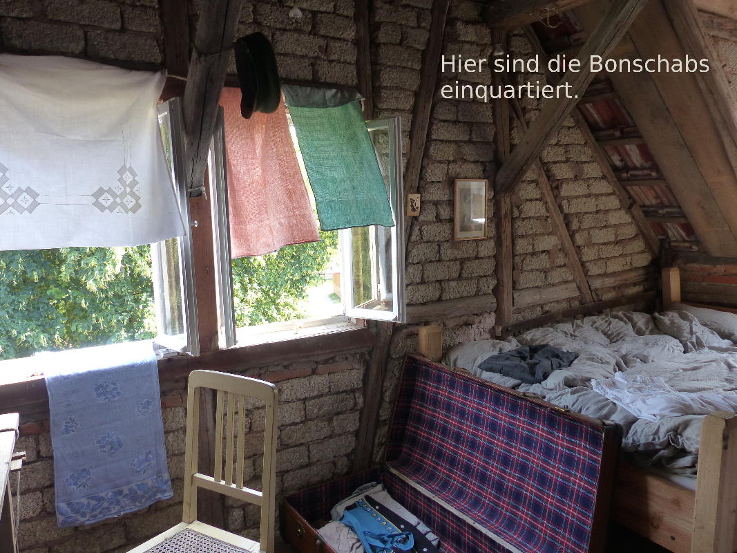 Das Datum des Geschehens haben wir auf September 1945 verlegt. In den ersten Wochen und Monaten nach der Kapitulation gab es eine Vielzahl an Verordnungen, Verboten und Einschränkungen, die den Deutschen kaum erlaubten, das Haus zu verlassen oder ein halbwegs normales Leben zu führen; also nur schwer darstellbar. Und die Besatzungssoldaten standen immer noch unter Kriegsstress, was sie gegenüber der Zivilbevölkerung unduldsam bis unberechenbar auftreten ließ. Vier Monate nach der Kapitulation hat sich aber eine gewisse neue Routine eingespielt, die man auch für die Besucher im Museum glaubwürdig darstellen kann.