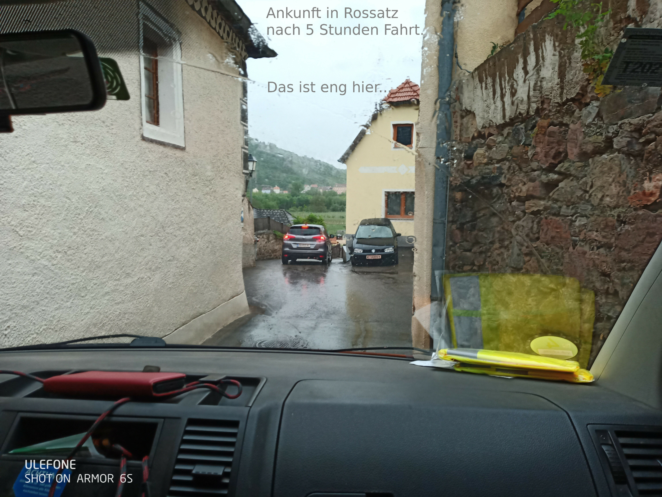 Wir fahren am Pfingstsonntag im Morgengrauen in Ammerfeld los, hinten im Pferdehänger auf der einen Seite Rufus, auf der anderen Seite unser zerlegter Karren. Niemand will etwas von uns sehen an der Grenze, weder den Corona-Schnelltest noch das amtstierärztliche Attest fürs Pferd. Wir fahren einfach durch.