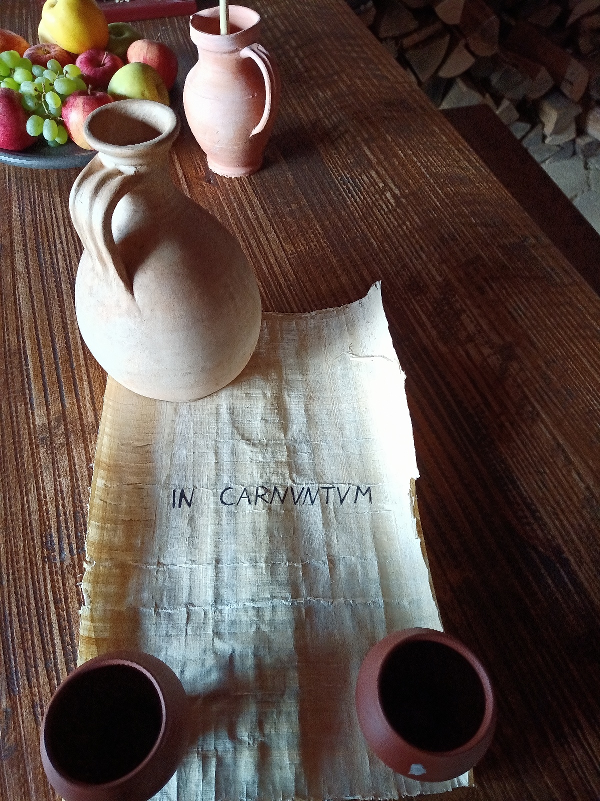 Hier stellen wir ein fiktives Treffen zwischen dem rätischen Fuhrmann auf dem Weg nach Carnuntum und dem fußlahmen Soldaten, der nach Pannonien abkommandiert wurde und dankbar die Mitfahrgelegenheit annimmt (FILM 2:17).