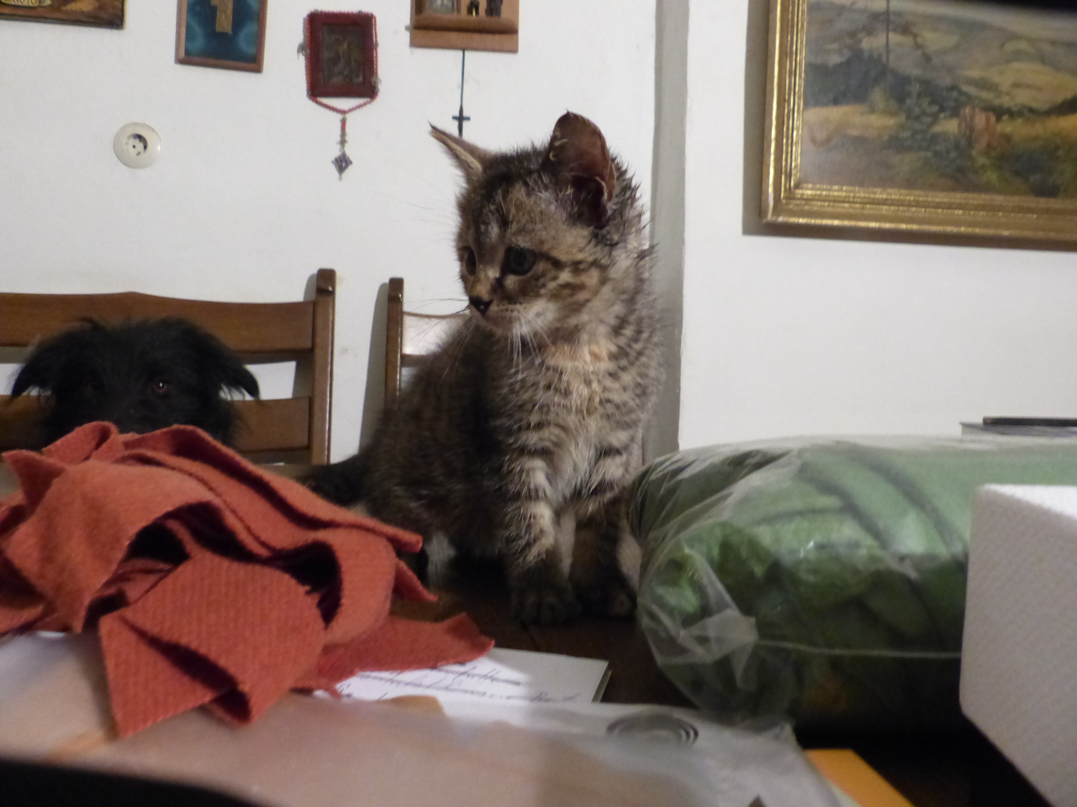 Am 24. September fährt Bert hinter zur Koppel, um Brennholz zu holen. Da bemerkt er ein einzelnes Kätzchen, das beim Holzstapel in der Nähe des Containers herumirrt. Das Kätzchen kommt schreiend auf ihn zugelaufen und läßt sich praktisch auf Anhieb streicheln.