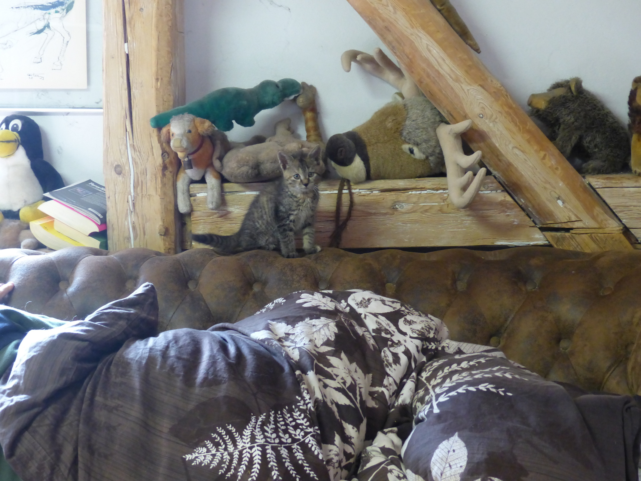 Es kommt, wie es kommen muß: nach einer Nacht bei uns bringen wir es nicht mehr übers Herz, das Katzenmädchen ins Tierheim zu bringen. Also wohnt der kleine Tribble jetzt auf dem Schmarhof...