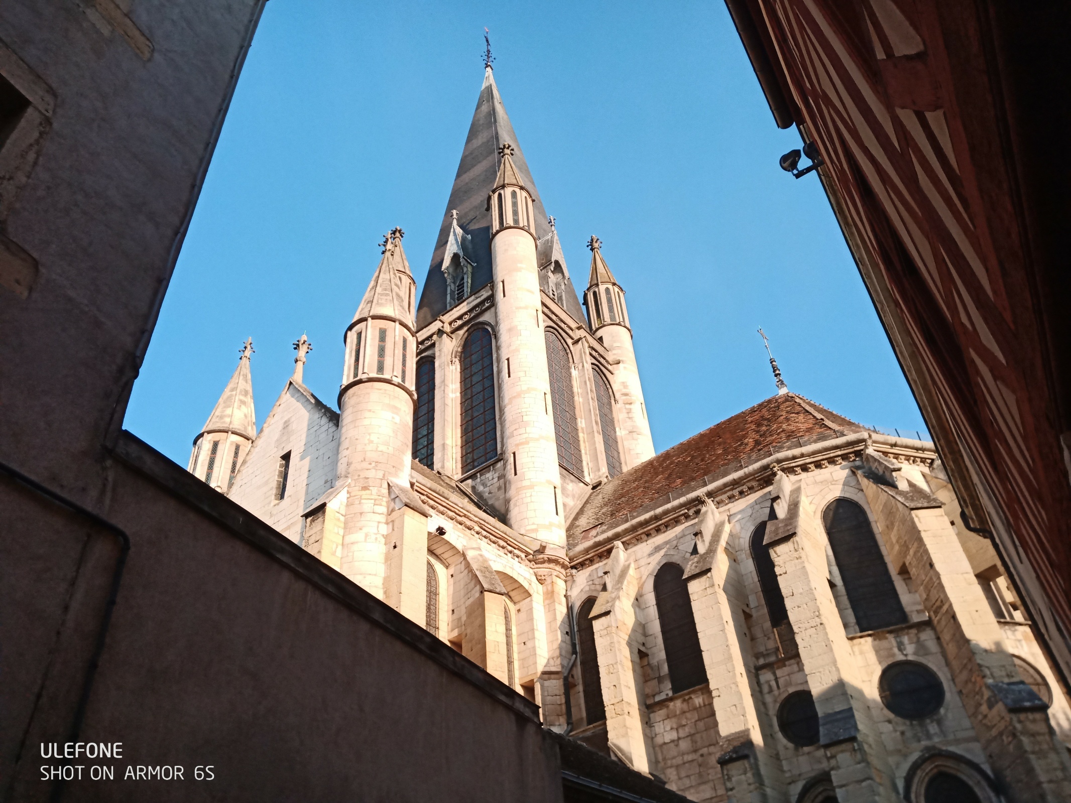 Nach erneutem Brand wurden 1185–1215 der Chor und das Querschiff in bereits frühgotischem Stil errichtet. Noch später (1260) folgten der Südwestturm (St. Michel) mit einer 15 m hohen hölzernen Spitze und die hochgotische Westfassade. Der Nordturm wurde nicht weiter aufgebaut. 1819 brannte die Turmspitze ab. Viollet-le-Duc restaurierte die stark baufällige Kirche ab 1840. Unter seiner Leitung wurde u. a. das äußere Westportal, das wahrscheinlich das Weltgericht mit einer Majestas Domini zeigte und in der französischen Revolution fast vollständig zerstört worden war, durch eine Neuschöpfung ersetzt.