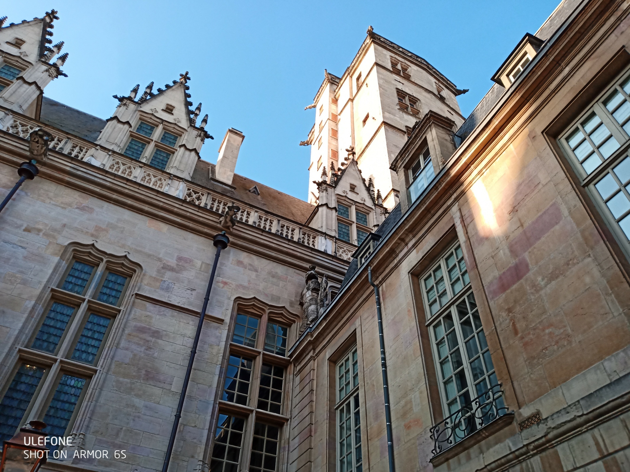 Der ehemalige herzogliche Palast am halbkreisförmigen, von Kolonnaden gesäumten Place de la Libération bildet bis heute den Mittelpunkt der Stadt, stammt aus dem späten 17. Jahrhundert und beherbergt heute im Westflügel das Rathaus. Der 46 Meter hohe Tour Philippe-le-Bon stammt aus dem 15. Jahrhundert. Im Viertel um den Herzogspalast stehen schöne Patrizierhäuser (Hôtels) aus dem Mittelalter und der Renaissance.