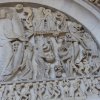 Das berühmte Tympanon, also das Bogenfeld über dem Westportal gilt als die bedeutendste Weltgerichtsdarstellung der Epoche. Das aus 29 Blöcken bestehende Relief zeigt das Jüngste Gericht. Beherrschendes Motiv ist die thronende Gestalt Christi, umgeben vom Würdezeichen der Mandorla, die von vier Engeln gehalten wird. Sonne und Mond flankieren sein Haupt.