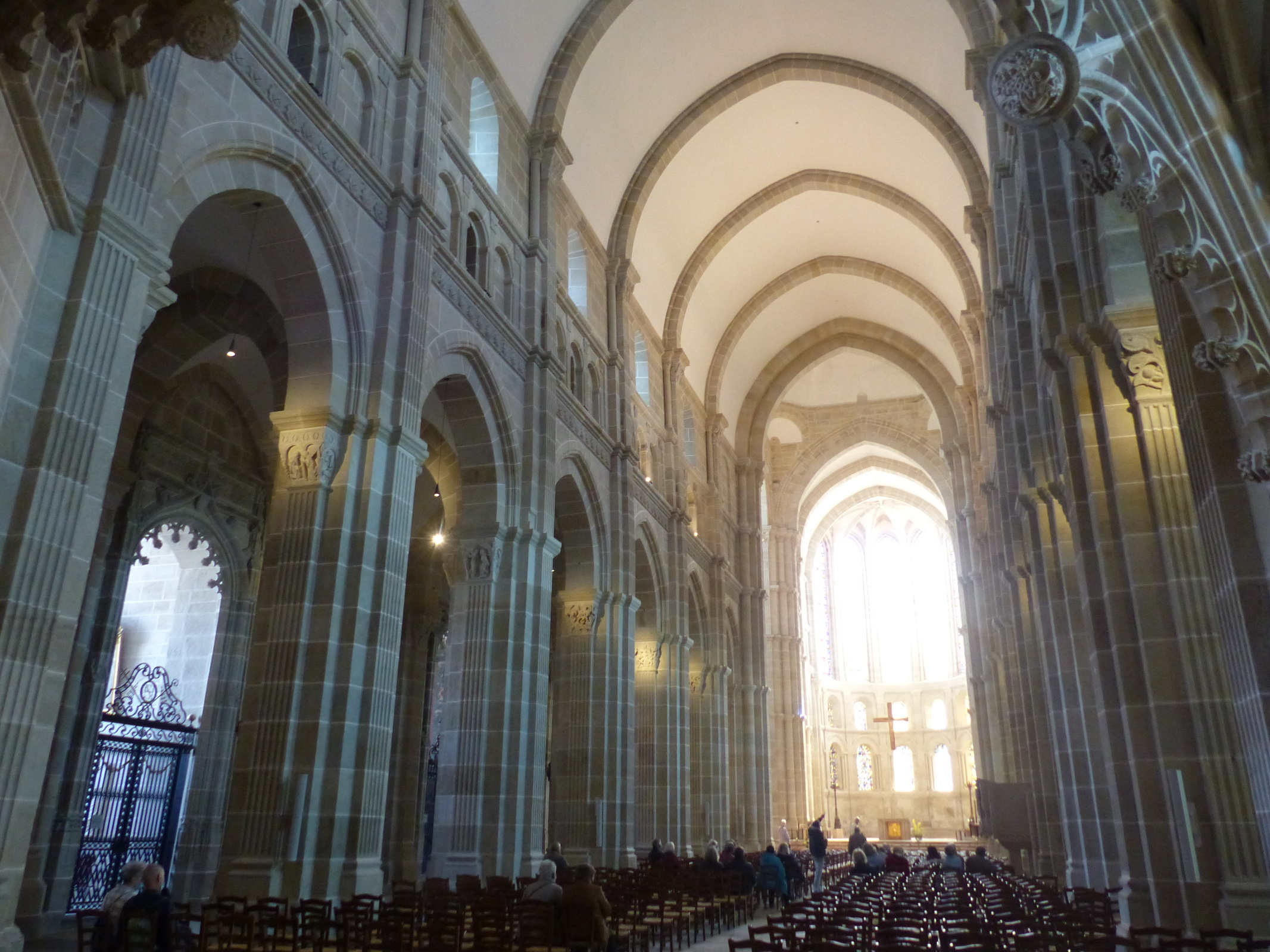 Im Zuge des Hundertjährigen Krieges zerstörten 1379 englische Truppen die Stadt und ihre große Wallfahrtskirche. Erst Kardinal Jean Rolin (Bischof 1436–1483) ließ das Gotteshaus wiederherstellen und erweitern. Seither prägen die spätgotischen Kapellenreihen an den Längsseiten und der mächtige Vierungsturm die Außenansicht der Kirche. Auch das obere Fenstergeschoss des Hauptchors mit seinen schmalen hohen Spitzbogenfenstern stammt erst aus dieser Erneuerung.