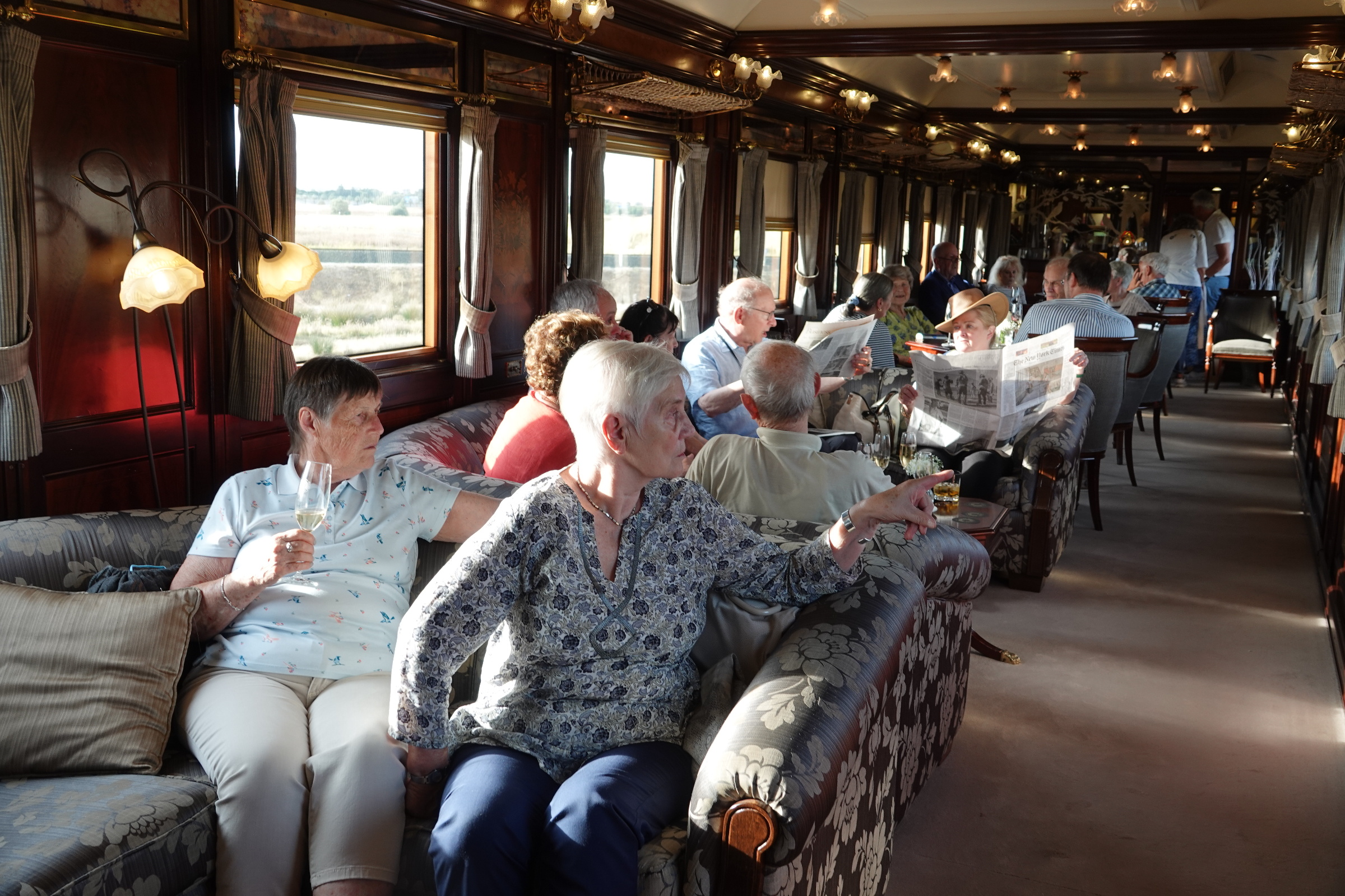 Die Küche an Bord hat Sterne-Niveau, wir werden von Koch André nach Strich und Faden verwöhnt. Morgens üppiges Frühstücksbuffet, mittags und abends je ein 4-Gänge-Menü. Hier bleibt keiner hungrig - es sei denn, er mag keinen Fisch. Das Zugpersonal ist überaus freundlich und zuvorkommend, zum Glück aber nicht steif und förmlich, sondern locker und gerne auch mal zum Scherzen aufgelegt.
