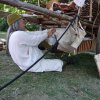 Am nächsten Morgen muß ein etwas übernächtigter Fuhrmann das viele Gepäck auf dem Wagen verstauen und alles startklar machen, denn: wir fahren los, auch ohne Boote..