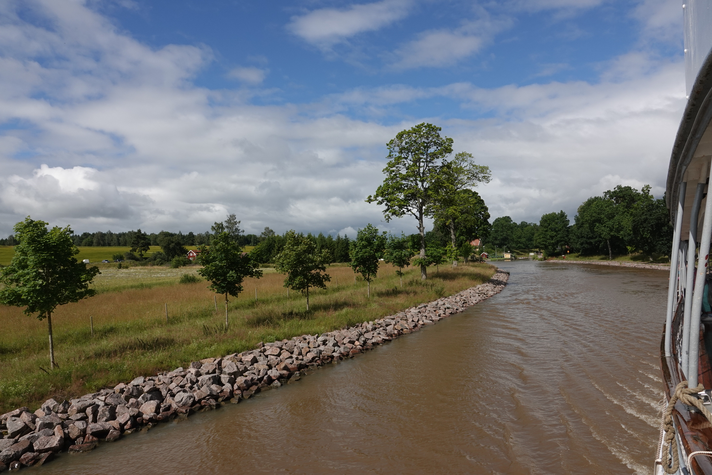 Am Götakanal sind zwei Aquädukte erbaut worden. Das 1993 eingeweihte Aquädukt bei Kungs Norrby erleichtert die Befahrbarkeit der Landstraße 34, welche wir gegen 11:10 Uhr überqueren. Etwa drei Stunden später passieren wir dann das zweite Aquädukt unserer Reise bei Ljungsbro, errichtet 1970.