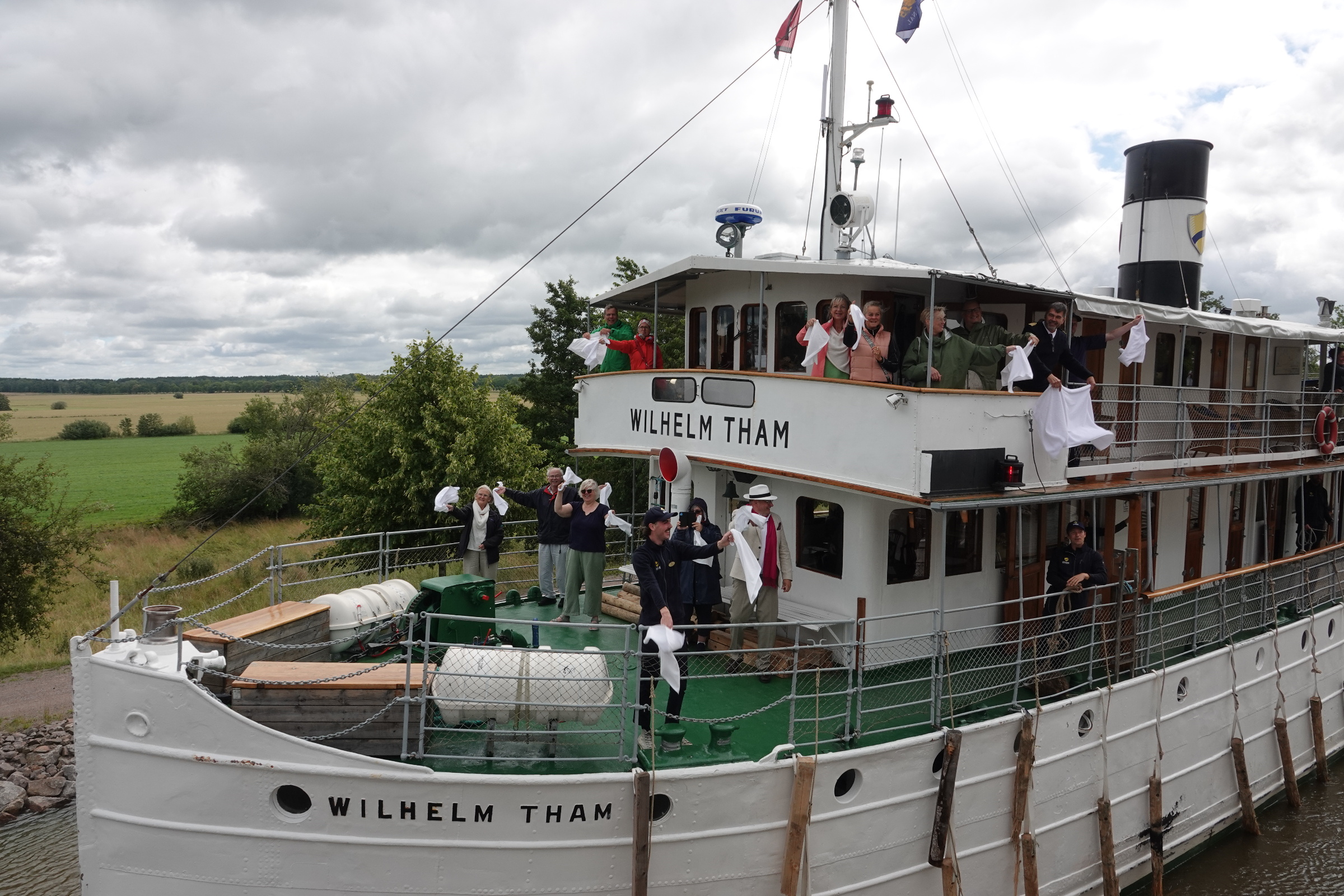 Wir gehen an Bord, bevor das Schiff auf den See Roxen hinaussteuert. Die Schleuse in Norsholm regelt den Wasserstand im See Roxen. Hier kreuzt der Kanal die Eisenbahnlinie Stockholm-Malmö. Danach befahren wir den langen aber schmalen See Asplången, bis wir zur Übernachtung bei der idyllischen Schleuse Klämman anlegen. Die Schleuse liegt eingeklemmt zwischen zwei Hügeln, daher der Name "die Klammer".