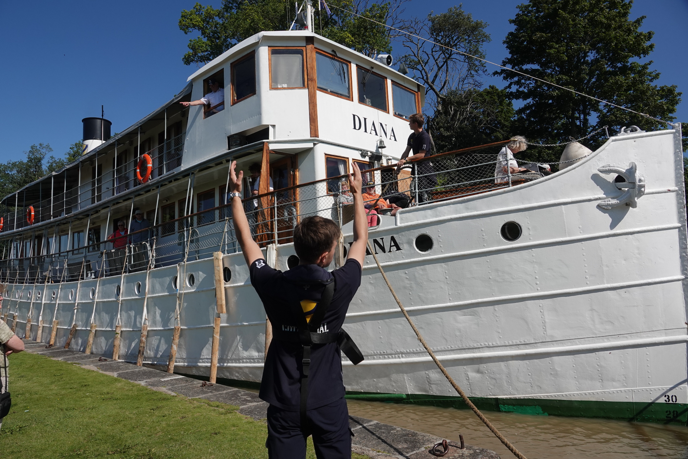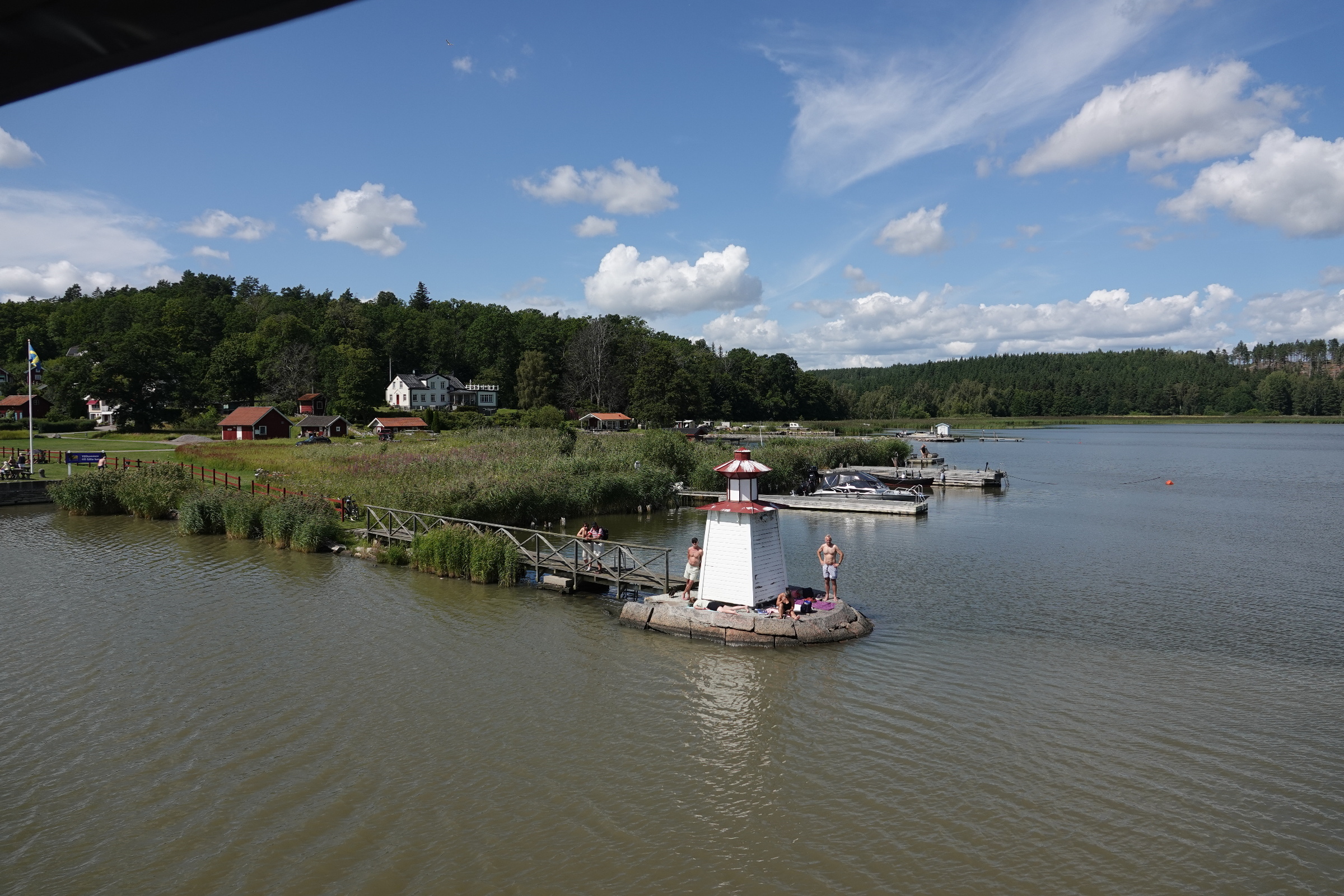 Am späteren Abend legen wir an der Brücke der alten Lotsenstation in Sävsundet an. Das Gelände ist in Privatbesitz, aber gegen einen Obulus dürfen die Kanalschiffe hier anlegen und die Nacht verbringen. Es ist ein wundervoller Abend. Einige gehen trotz eisiger Temperaturen schwimmen, andere flanieren gemütlich am Steg entlang und geniessen die Ruhe und die Idylle. Unser letzter Abend an Bord...