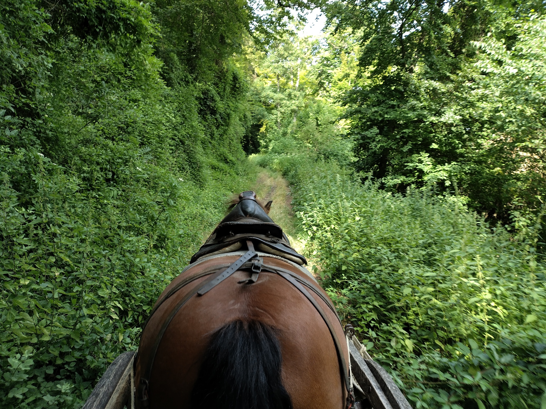 Unser übliches Reitgebiet: stark hügelig, eine herrliche Mischung aus Wiesen und Feldern und schattigem Wald.