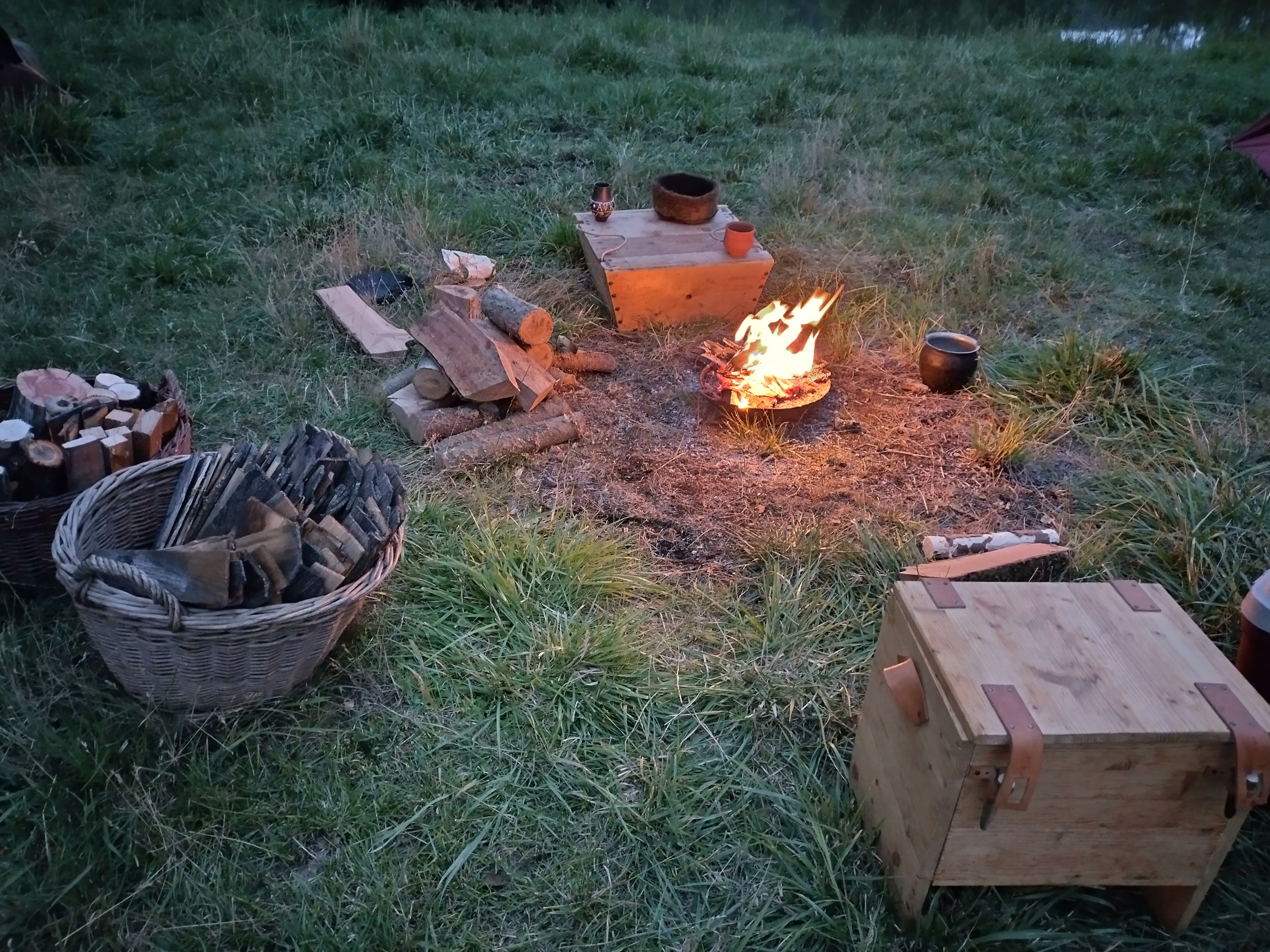 Abends sitzen wir noch gemütlich um die kleine Feuerschale mit dem flackernden Feuerchen und grillen unser Fleisch und die Würschtl. Ein gemütlicher Abend und eine friedliche Nacht am Weiher.