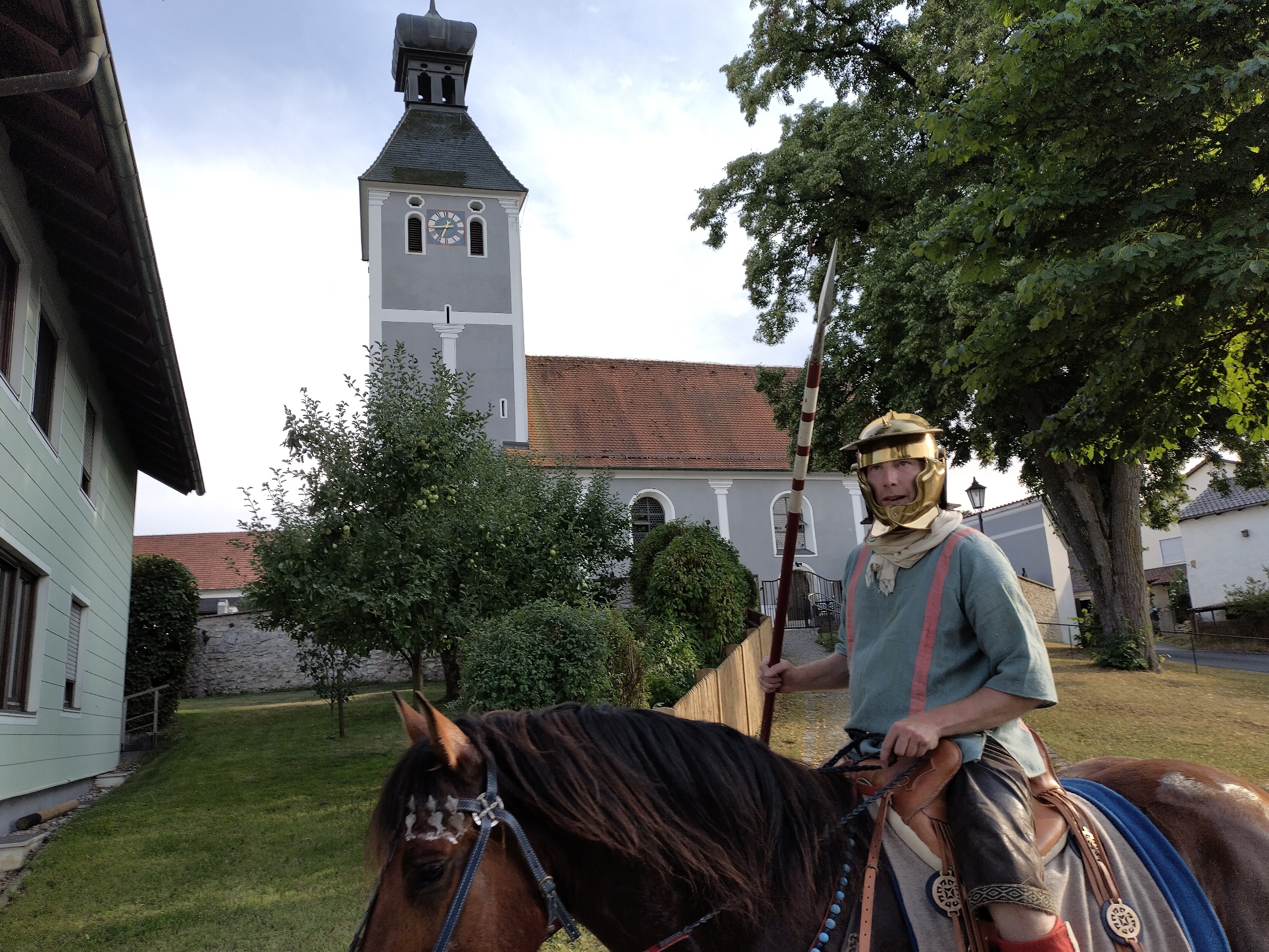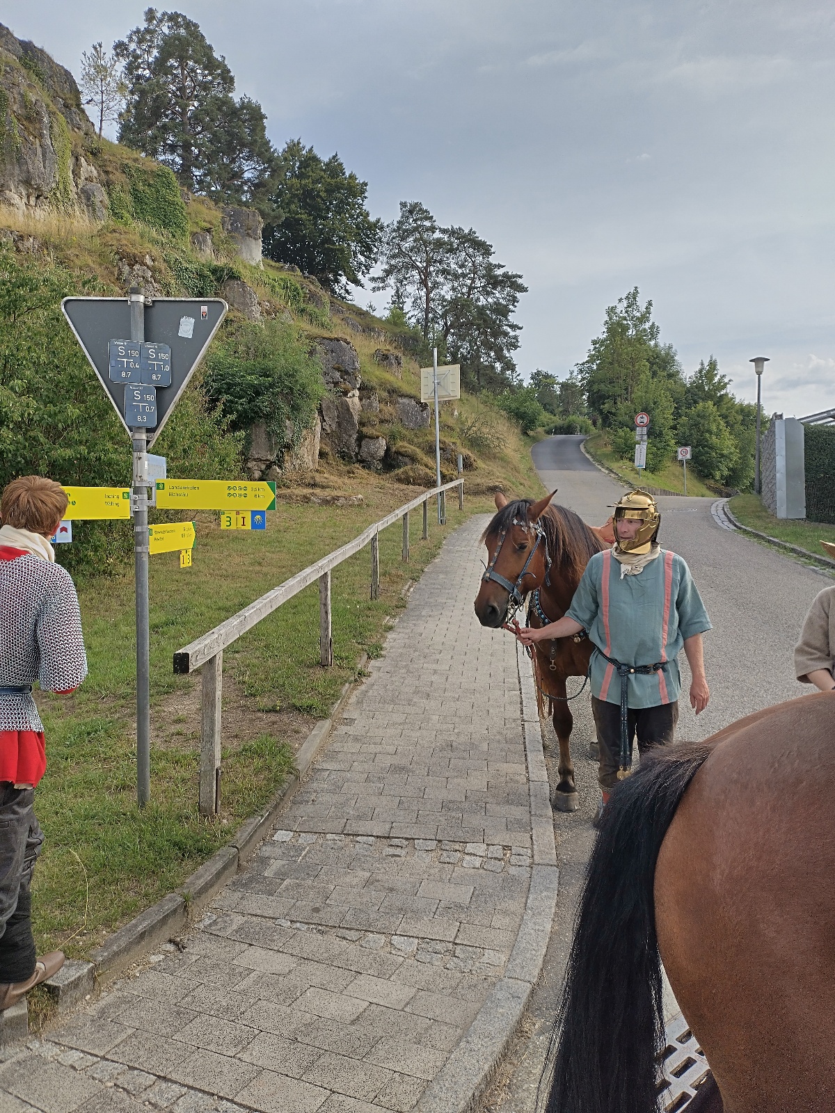 Dritter Marschtag ist der Samstag. Wir gehen zunächst nur zum nahe gelegenen Kastell Pfünz, um an der Veranstaltung teilzunehmen. Am Nachmittag kommt dann der lange Marsch nach Gungolding, immer an der Altmühl entlang. Unterkunft gewährt uns und den Pferden Thomas Piehler (ein Teil übernachtet auch im Gasthof).