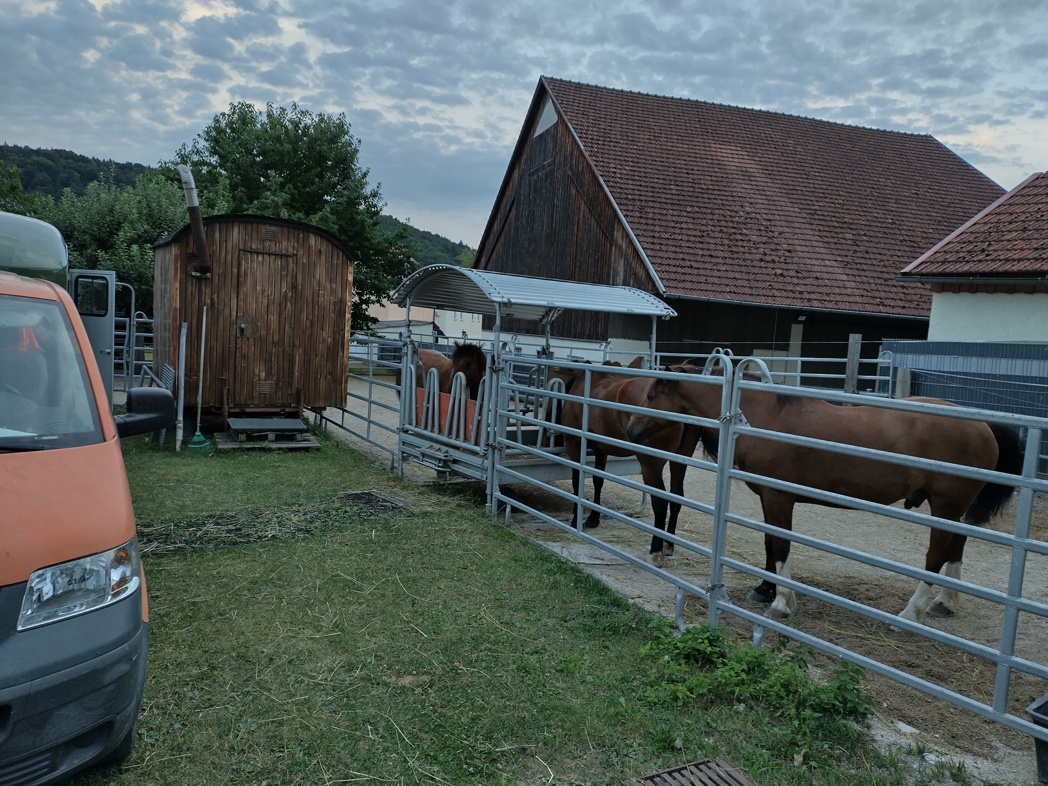 Im Anschluß werden die Autos geshuttelt: wir holen unseren Colt und Jans Auto am Weiher ab. Das Gepäck wird am Haflingerhof neu sortiert und teilweise umgeladen, dann fahren wir den Bus nach Gungolding und Jans Auto nach Kipfenberg. Mit dem Colt fahren dann alle drei Chauffeure wieder nach Landershofen zurück. Jetzt haben wir Feierabend. Es wird gemütlich gegrillt - und relativ früh schlafen gegangen.