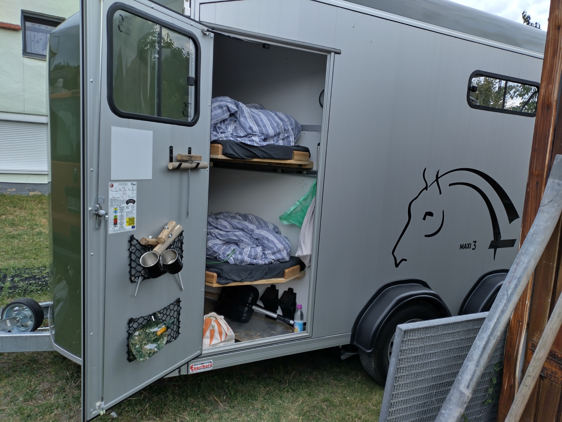 Es ist schier unerträglich heiß. Zum Glück haben wir ein schattiges Plätzchen für die Pferde zugewiesen bekommen.