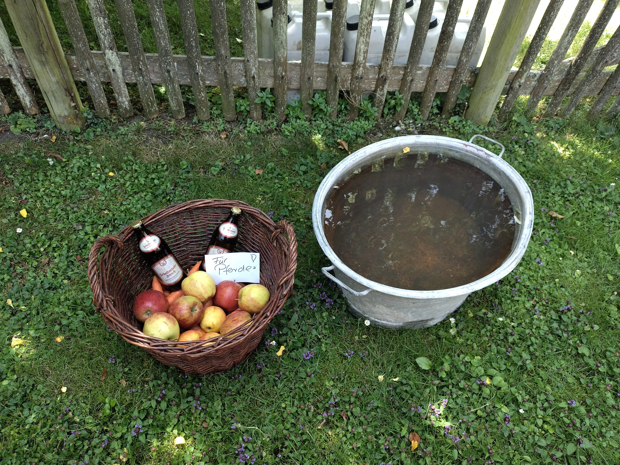 Wir bleiben am linken Altmühlufer und folgen dem Radweg, vorüber am Burgsteinfelsen, vorbei an Breitenfurt. Bei der Attenbrunnmühle, die Passanten den Durchgang verweigert, müssen wir über eine kleine Fußgängerbrücke auf die andere Altmühlseite wechseln. Dann erreichen wir den Schäferwagen "Mein Platz an der Bruck" unterhalb von Schernfeld und machen Rast. Leider ist es noch zu früh und der Schäferwagen ist nicht bewirtschaftet, aber wir führen genug Wegzehrung mit uns. Die Pferde binden wir im Biergarten an den Bäumen an und sie dösen vor sich hin.