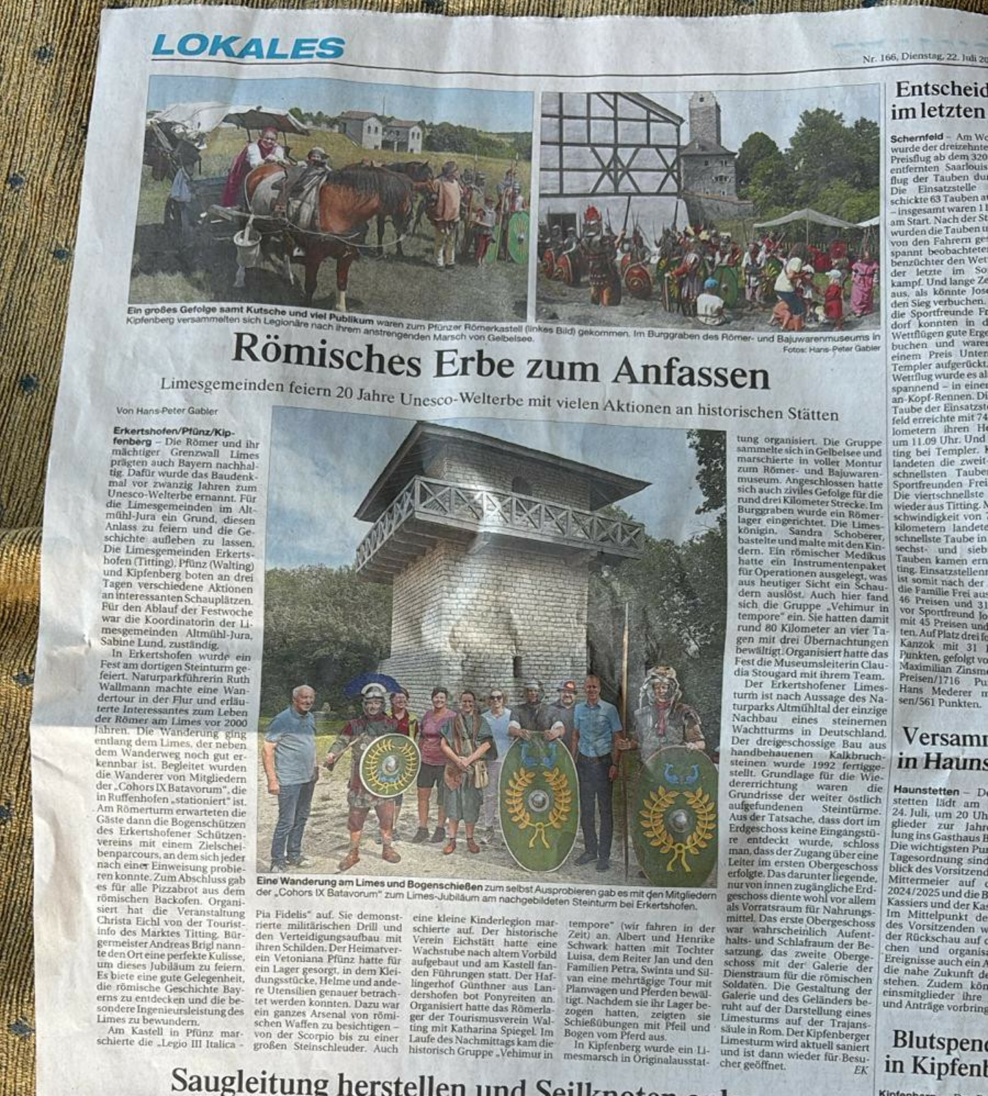 Aktionswoche Limes: In römischer Ausrüstung mit dem Karren und zwei Reitpferden von Ammerfeld über Eichstätt nach Pfünz und Kipfenberg / 17. bis 20. Juli 2025