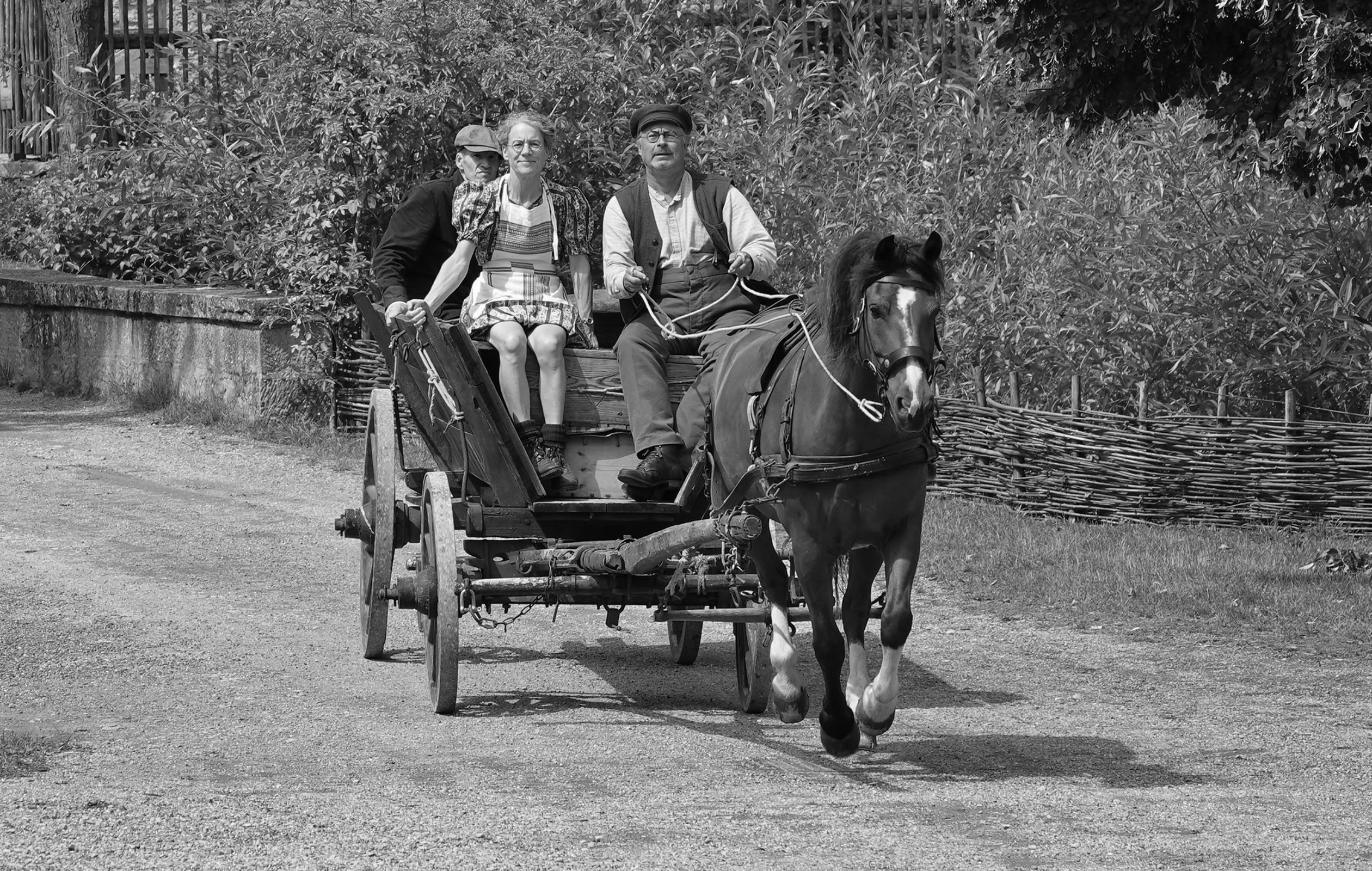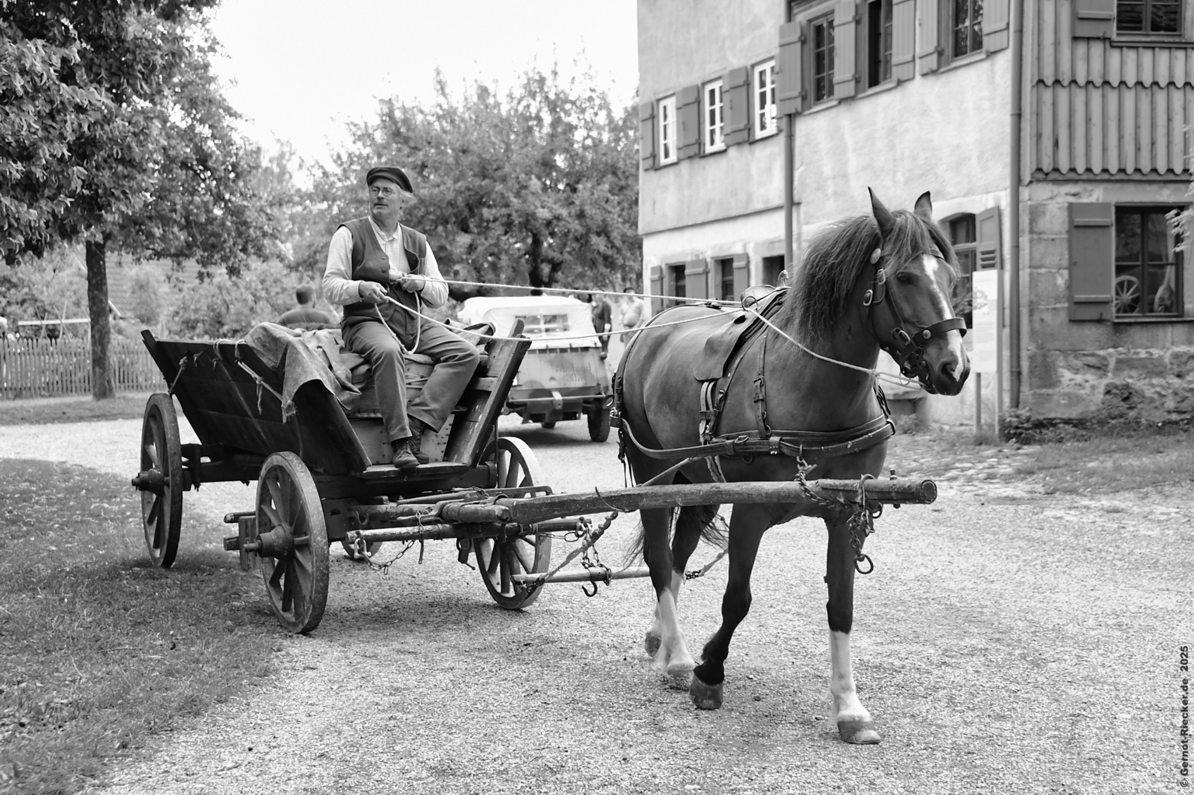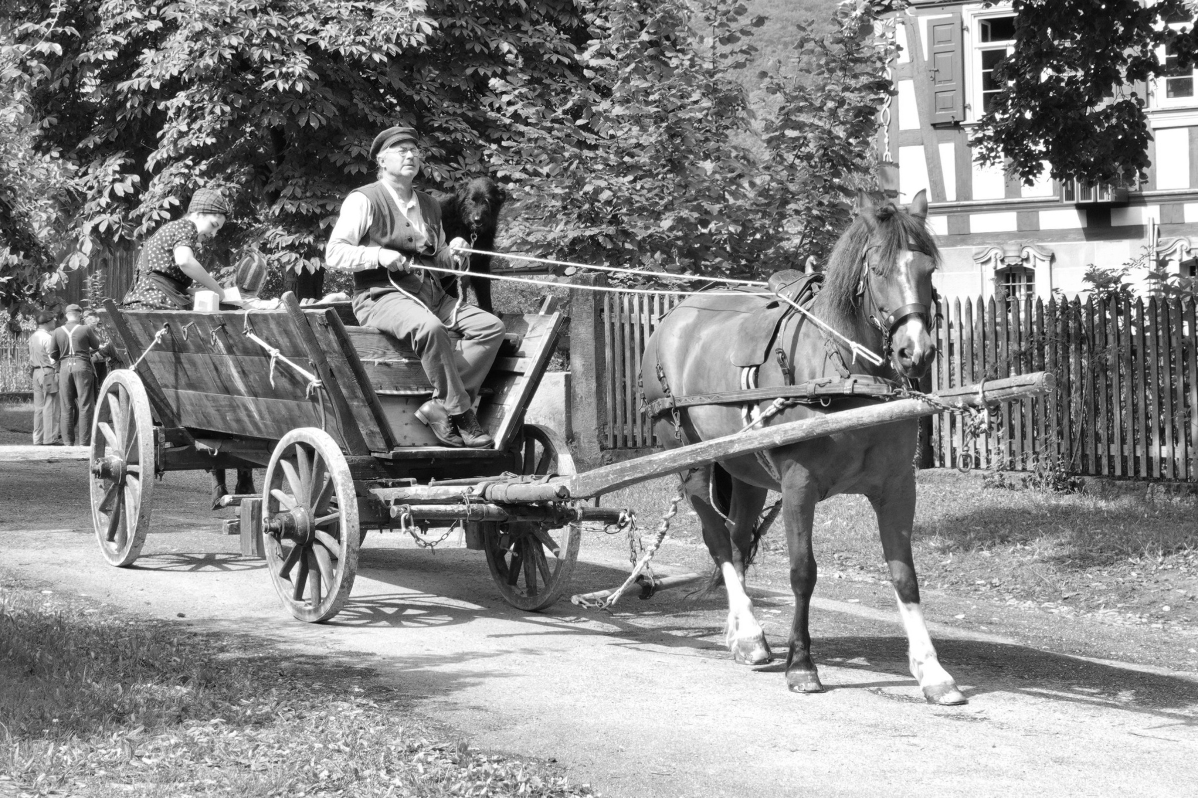 Karrengaul Rufus ist im Dauereinsatz: Personentransport, Materialtransport, Anlieferung der CARE-Pakete aus Hall...