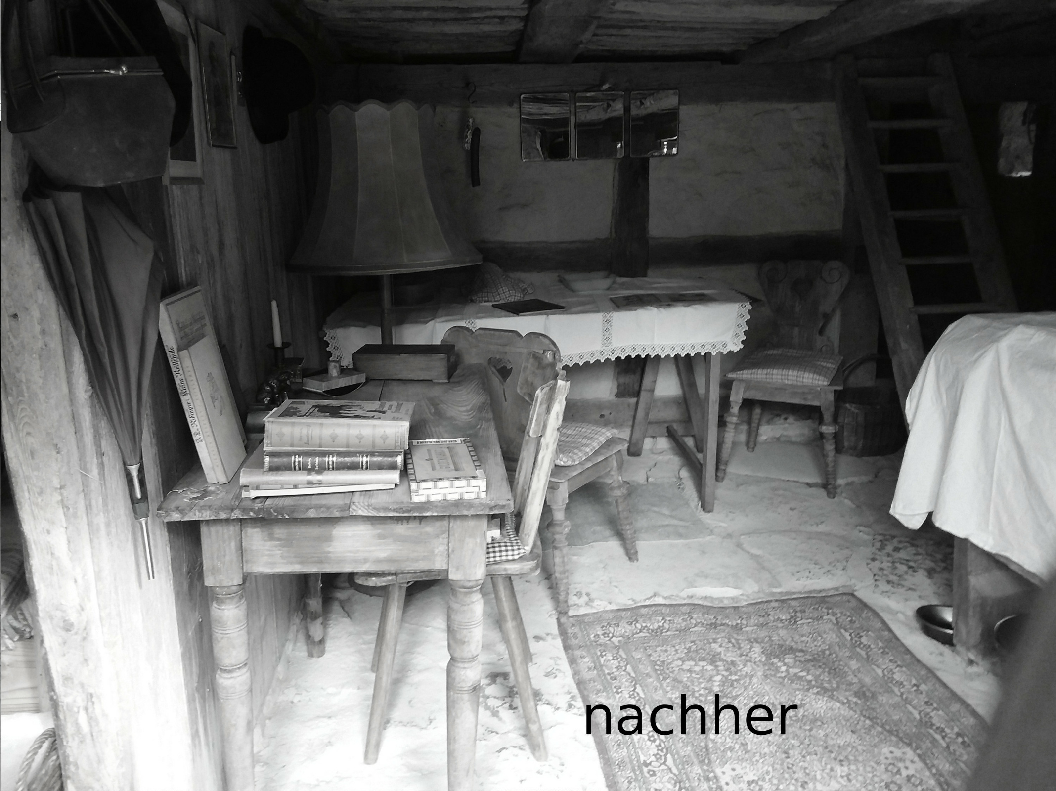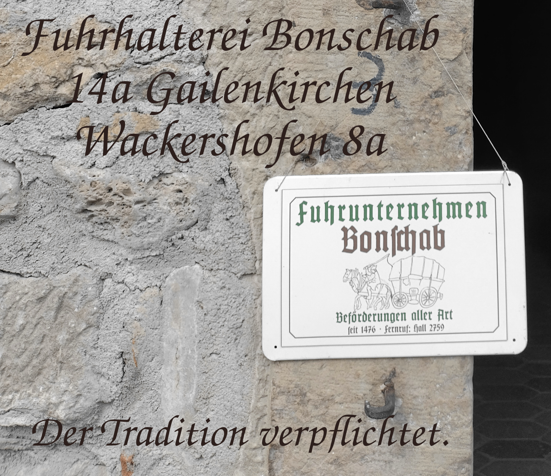 Nach dem Bombenangriff auf den Haller Bahnhof am 23. Februar 1945, der auch die Stallungen des Fuhrunternehmens zerstörte, war die Familie Bonschab mehr schlecht als recht in einer Rumpelkammer unter der Schneiderei von Emma Würkner einquartiert.