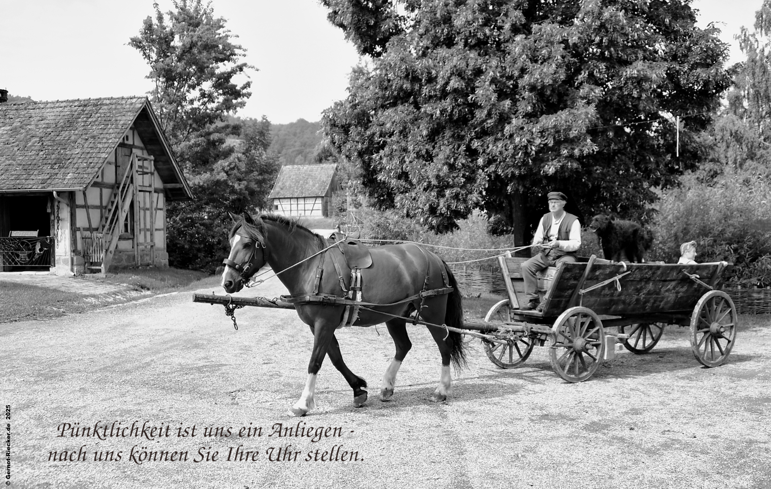 Der Fuhrmann träumt davon, sich bald ein weiteres Pferd leisten zu können. Und wenn der Treibstoff für die Autos und Lastkraftwägen weiterhin so schwer zu beschaffen ist, könnte das Transportwesen mittels Pferdewagen eine goldene Zukunft haben.