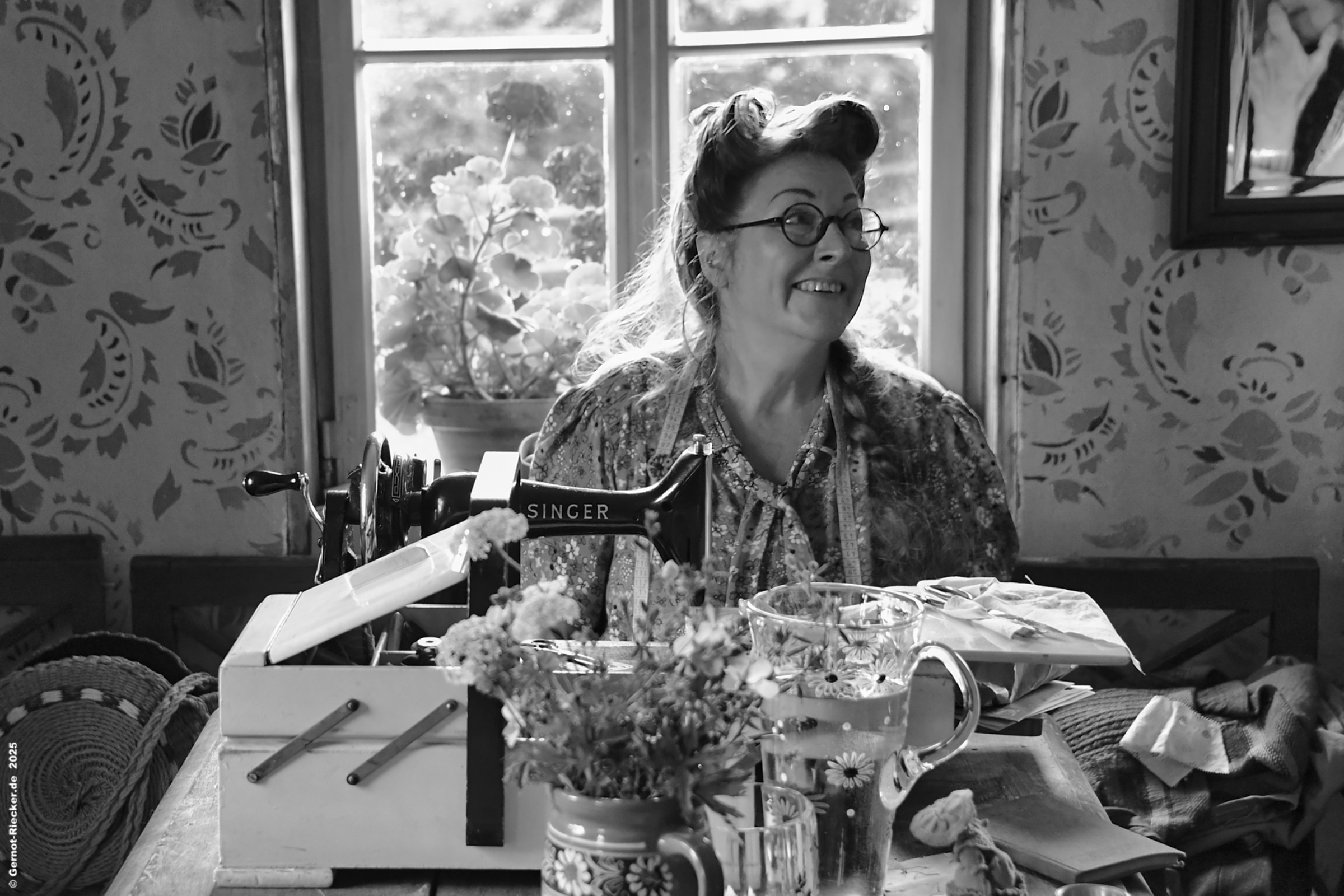 | Die Schneiderei von Frau Emma Würkner - dient zuweilen auch als Frisiersalon. | Else Knieriemen, Wäscherin und beste Quelle für Tratsch. |
