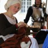 Neben der militärischen Burgbesatzung bevölkert eine Vielzahl an Handwerkern Burghof und Ritterhaus: Brigandinenmacher, (Messer)schmied, Waffelbäckerin, Heiligenbäcker, Ofenkachel-Herstellerin, Töpferin, Armbrustbauer, Schneider, Goldschmiedin, Nadelmacher, Schreiber, Buchmaler, Maler, Schuster, Näherinnen, Seidenspinnerin, Lederer/Futteralmacher. Die zivile Bevölkerung wird noch verstärkt durch die Küchencrew mit ihren zahlreichen Helfern sowie den "camp followers", die Getränke reichen und Essen austeilen, wenn ein Teilnehmer während der Öffnungszeiten der Lenzburg nicht fort kann von seiner Station, seien es von Interessenten belagerte Handwerker, Soldaten beim Drill oder die Wachen am Tor oder bei der Kanonenstellung. Diese Funktion - Cantinière - ist an dem Wochenende meine Aufgabe.