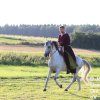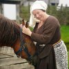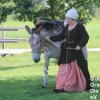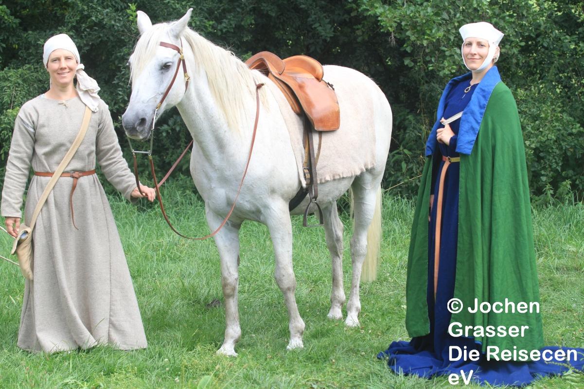 Wir haben schon von verschiedenen Pferdetypen gehört. Zu ergänzen wäre noch der „Palefredus“, das Prachtreitpferd. Das heutige Wort „Pferd“ soll von diesem Wort herstammen. Hier stellt mein Moise, der als Araber-franz.Ponymix mit einem Stockmaß von 1, 47m durchaus so ähnlich im 13. Jahrhundert hätte auftauchen können, den Palefredus einer Dame dar, die vielleicht zu Repräsentationszwecken in gesellschaftlichem Anlass beritten ist, sie könnte aber auch Reisen oder gar an einer Jagd teilnehmen.