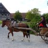 Der Fuhrmann hat sein junges Roß eingespannt, das die allgemeine Stimmung zu spüren scheint und sehr aufgeregt ist.