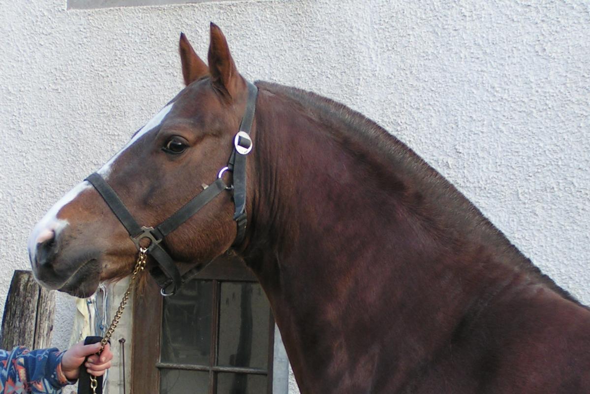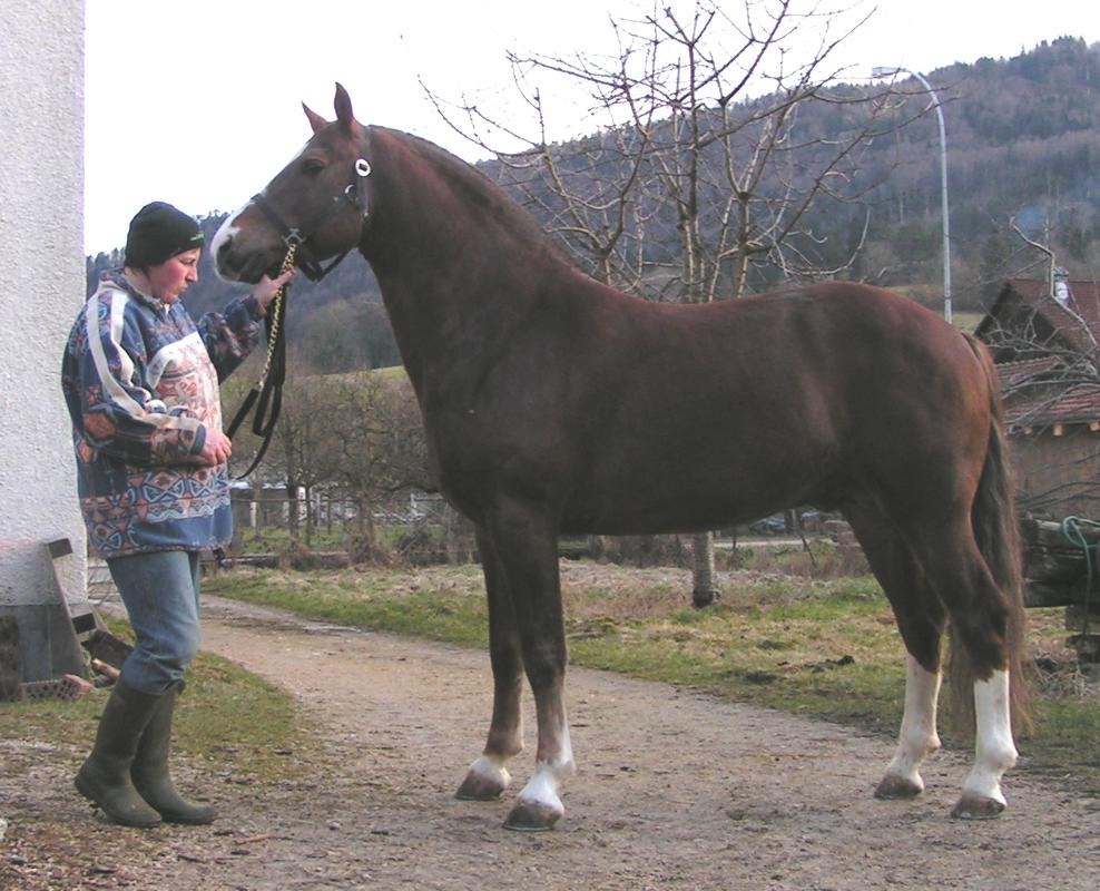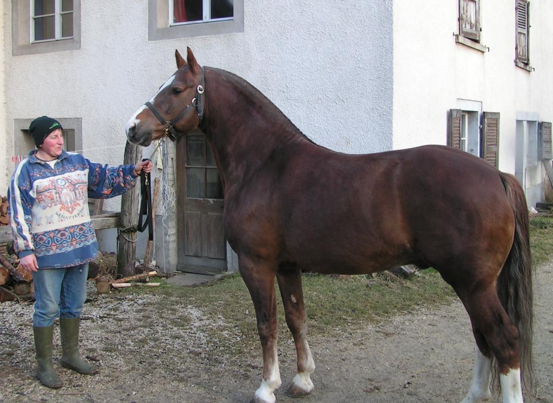 Da wir auf der Suche nach einem geeigneten Fohlenvater sind, fahren wir nach Glovelier, um die Selektion der Junghengste anzuschauen - und um den Hengst Hermitage (Helix/Cardin/Eliot) in natura zu betrachten, der bei Jean Monin in Glovelier stationiert ist.