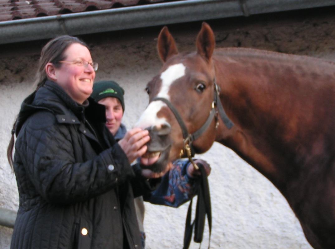 Einzig und allein Gilettes neuer jurassischer Freund (ein 3-jähriger Wallach von Hermitage), der mit ihr und einer weiteren 3-jährigen Stute die Koppel geteilt hat, ist jetzt todunglücklich. Jean Monin sagte, er hing so an Gilette, daß sie sogar gemeinsam in eine Box marschiert sind und sich fortan nachts eine Box geteilt haben. Der Arme war ganz aufgeregt, als wir Letti von der Koppel holten und schrie ihr die ganze Zeit hinterher!