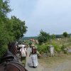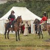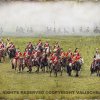 Uns wird mitgeteilt, daß wir mit Pferd und Karren auf keinen Fall hier passieren können, man will uns ins Lager zurück schicken. Unsere Verletzten steigen ab und versuchen, humpelnd bis zum Schlachtfeld zu kommen. Wir diskutieren lange mit der Organisatorin, die die Zufahrt eines Wagens aufs Schlachtfeld kategorisch ablehnt und sagt, wir seien (mit Pferd und Wagen) nicht angemeldet und dürften daher nicht teilnehmen. Ich bin tief enttäuscht. In der Zwischenzeit läßt die Security eine Infanterieeinheit nach der anderen an uns vorbei marschieren, damit die Inszenierung der Schlacht pünktlich beginnen kann. Auch unsere Landwehr ist schon längst auf dem Feld.