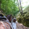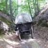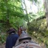 Die Fuhrwerke bekommen das Signal, den Wehrmännern in den Wald zu folgen, und wir begeben uns auf einen tief eingeschnittenen Hohlweg, steil bergab, mit tiefen Rillen, Felsbrocken und herabgefallenen Ästen.