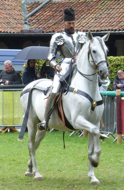 Bewundernd schauen Rufus und sein Fuhrmann den Rittern und ihren Pferden zu. Die Schlachtrösser stehen unter enormer Spannung. Sobald der Reiter die Lanze entgegen nimmt, sind sie kaum mehr zu bändigen und wollen losstürmen.