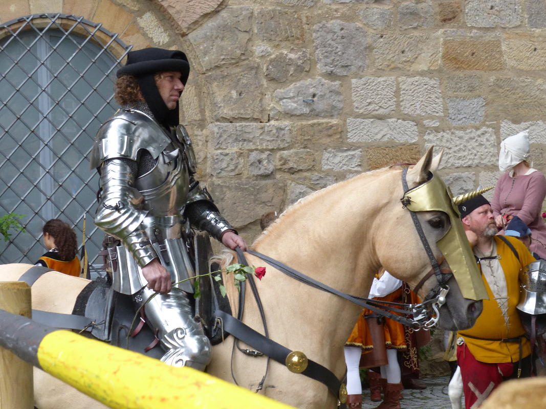 Die edlen Ritter und ihre Damen speisen natürlich hochherrschaftlich an einer eigenen Tafel. Das Rittermahl wird von "Geschichtsfenster" ausgerichtet und hält sich streng an bildliche Quellen.