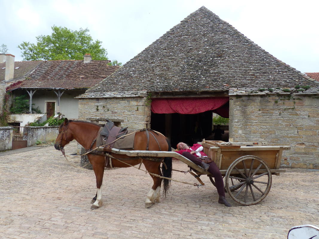 Der Fuhrmann hat seinen Posten bezogen - Haltestelle Markthalle. Hier wartet er auf Kundschaft.