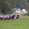 Die Mädels aus dem burgundischen Lager (von der organisierenden IXe. Compagnie) schleppen das Wasser in schweren Kanistern zu unserem Lager, denn bei uns gibt es keinen Anschluß an fließend Wasser. Wir stellen unsere Schubkarre zur Verfügung und versuchen teilweise zu helfen.