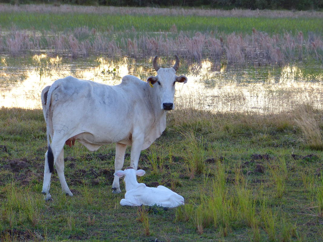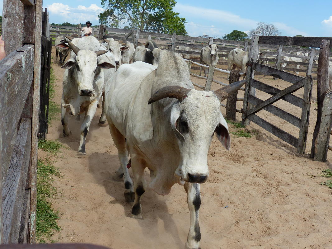 Gezüchtet werden vor allem indische Nelore-Rinder, eine Zebu-Rasse, die an das tropische Klima besser angepaßt ist als europäische Rinderrassen. Beim Besamen werden auch Angus eingekreuzt, weil der Fleischmarkt diese Kreuzungen bevorzugt. Aber nur bei den reinrassigen Nelore-Kälbern werden die Kühe aufgezogen und auf der Fazenda zur Weiterzucht eingesetzt.