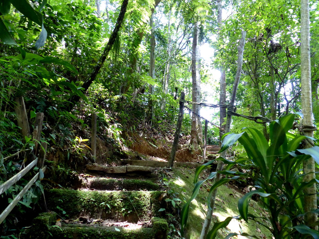 Wir folgen dem kleinen Bach gut einen halben Kilometer steil bergab auf einem felsigen Pfad. Der Weg ist gut ausgebaut, aber ungeheuer steil.