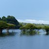 Der Wasserstand läßt es schon zu, daß wir ein ganzes Stück in den überschwemmten Wald hineinfahren können. An den Ästen der Bäume kann man in etwa erkennen, wie hoch das Wasser üblicherweise noch zu steigen pflegt.