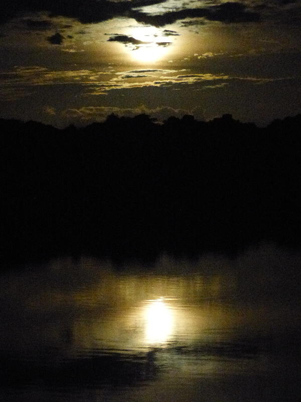 Wir geniessen erst einen stimmungsvollen Sonnenuntergang und dann nachts die Spiegelung des Vollmonds im Wasser.