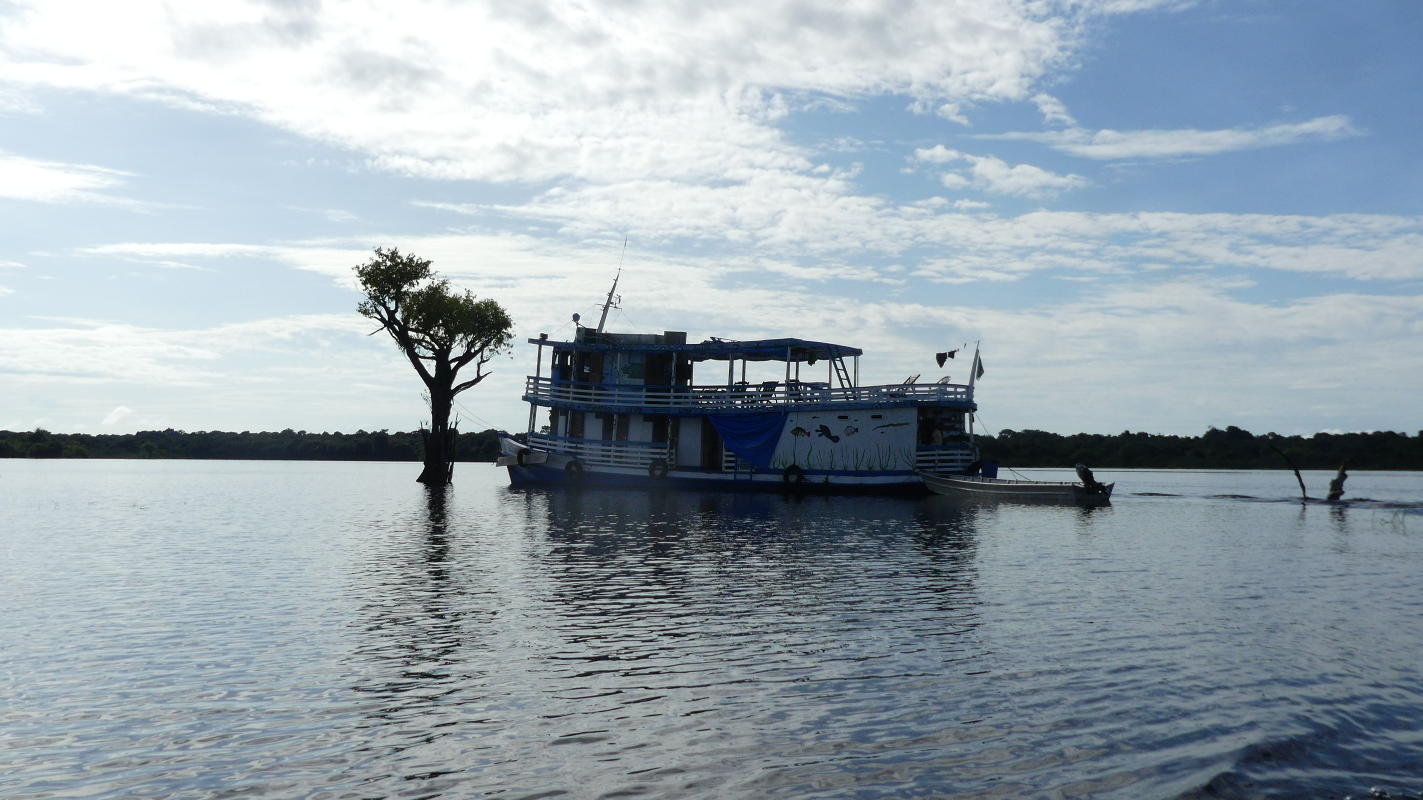Abends liegt die Aynara, an einem allein stehenden Baum angebunden, mitten auf dem "Lago dos Botos" (See der Flussdelphine).