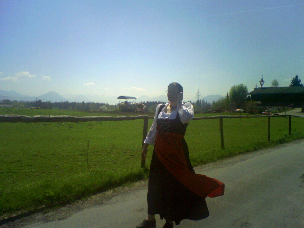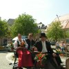 Das Haflingergespann vom Ernsthof in Kolbermoor sorgte wenigstens für ein bißchen Feierlichkeit. Kutscher Herbert Ernst ist ein alter Bekannter und hatte für uns seine repräsentative Victoriakutsche geschmückt. Beim Anspannen seiner 22-jährigen Haflingerdame Orchidee und ihrer hochträchtigen Kollegin Angie brach dann die Holzdeichsel und Hals über Kopf mußte der Blumenschmuck auf den kleinen Gummiwagen übertragen werden. Irgendwie symptomatisch für unsere Hochzeit...