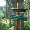 Wir erhalten unterwegs vielfach Tipps von Passanten: von einem Radfahrer, der Mitglied des Rennsteigvereins ist, oder von eine Joggerin, die uns auf einem Waldweg begegnet. Wir müssen aber feststellen, daß unser Fuhrwerk doch etwas anderes ist. als sich die Leute vorstellen. Einmal ist der Weg zu buckelig für uns, da würde der Karren umkippen, ein anderes Mal gehen wir einen Riesen-Umweg, der vermutlich gar nicht nötig gewesen wäre. Man rät uns eindringlich, den Großen Inselberg zu umgehen und wir verzetteln uns im Wald beim Versuch, die Wege zu finden, die uns empfohlen worden waren. Hätten wir den Inselberg einfach auf der Asphaltstraße überquert, wären wir vermutlich schneller und mit weniger Anstrengung weiter gekommen.